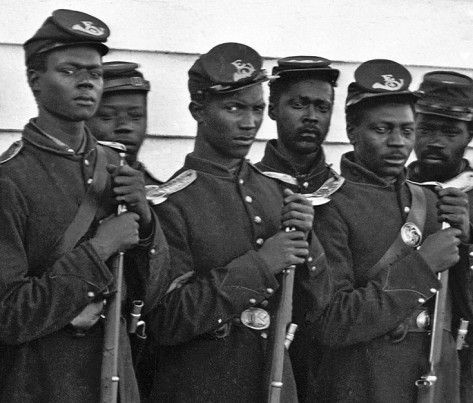 Photo: William Morris Smith, Members of Company E, 4th U.S. Colored Infantry, at Fort Lincoln, Washington, D.C., c. 1863 (detail).